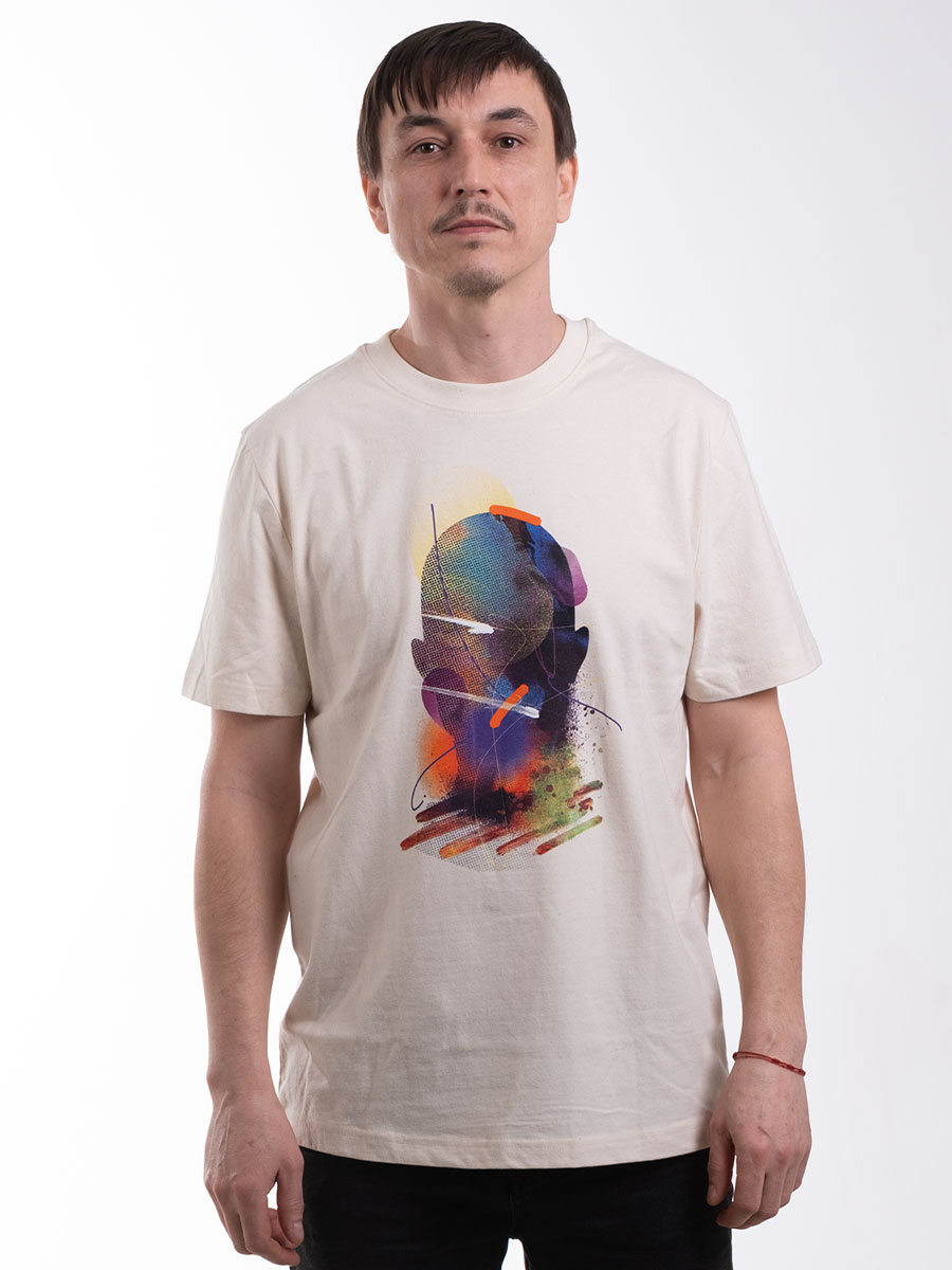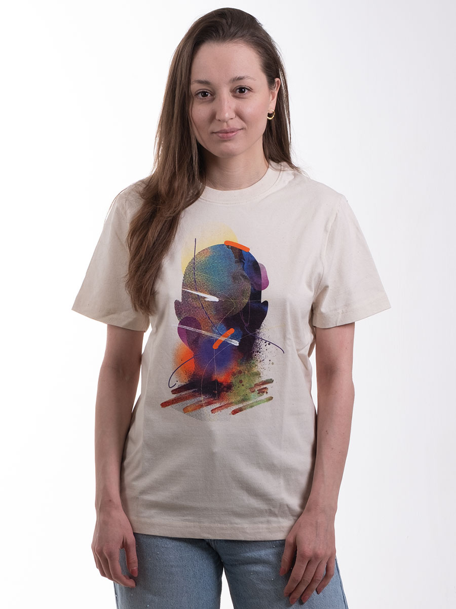 Autorem potisku je visual artist Martin Kafes33 Hirth, který pro tuto edici vytvořil výrazný, barevně vrstvený motiv pracující s abstraktní siluetou hlavy – symbolem myšlenek, kreativity a energie, která nás spojuje.